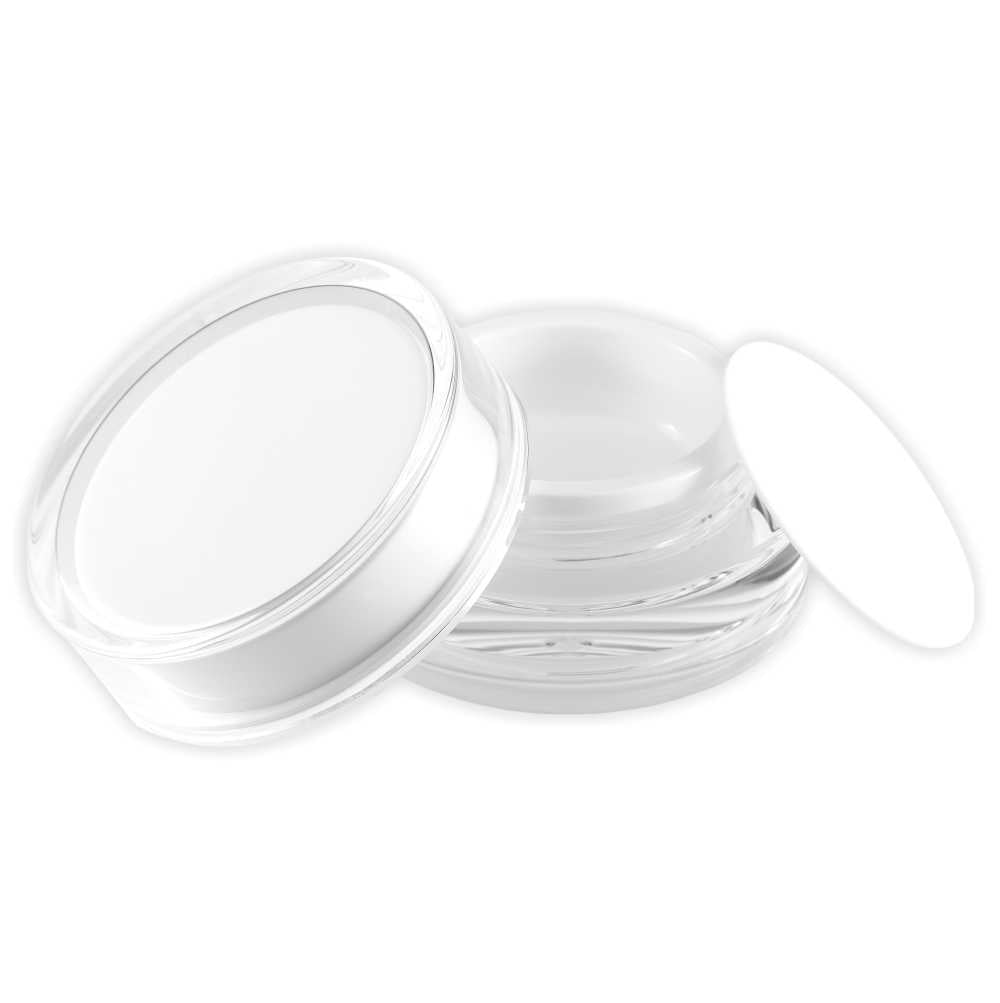 Die 15ml Leerdose "NAILFUN Beauty Style", besitzt einen weißen Innentopf (PP) und einen glasklaren Außentopf (Acryl). Ebenfalls enthalten ist eine passende Abdeckscheibe in weiss.
